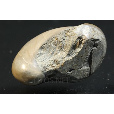Cortado por la mitad. Completo, se puede ver la concha original irisada.